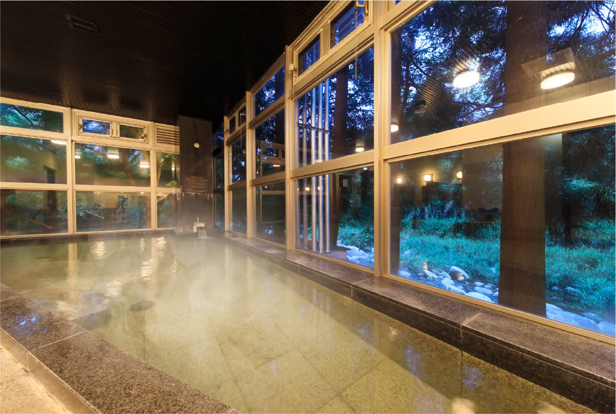 Large public bath国内でも5本の指に入る高アルカリ性泉質です。ヌルヌルとした触感で「美人の湯」として有名、風呂上がりに化粧水がいらないほどのしっとり感が残ります。また内風呂と露天風呂があり、湯温に温度差がある為、交互に入浴すれば新陳代謝が促進され、美容にも効果的です。