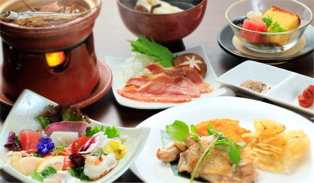 Breakfast地産地消に拘った、彩り豊かな食材や