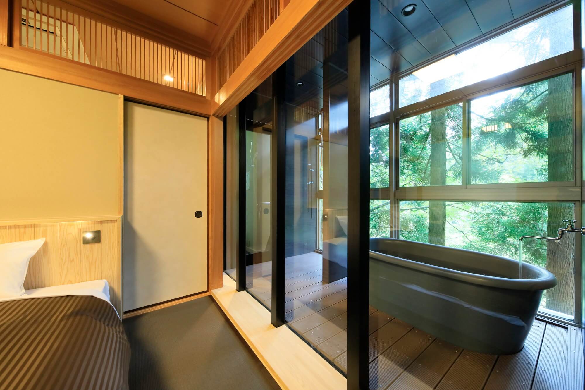 with Semi Open-Air Onsen Bath広々とした当館1室のみの温泉半露天風呂付の特別室。