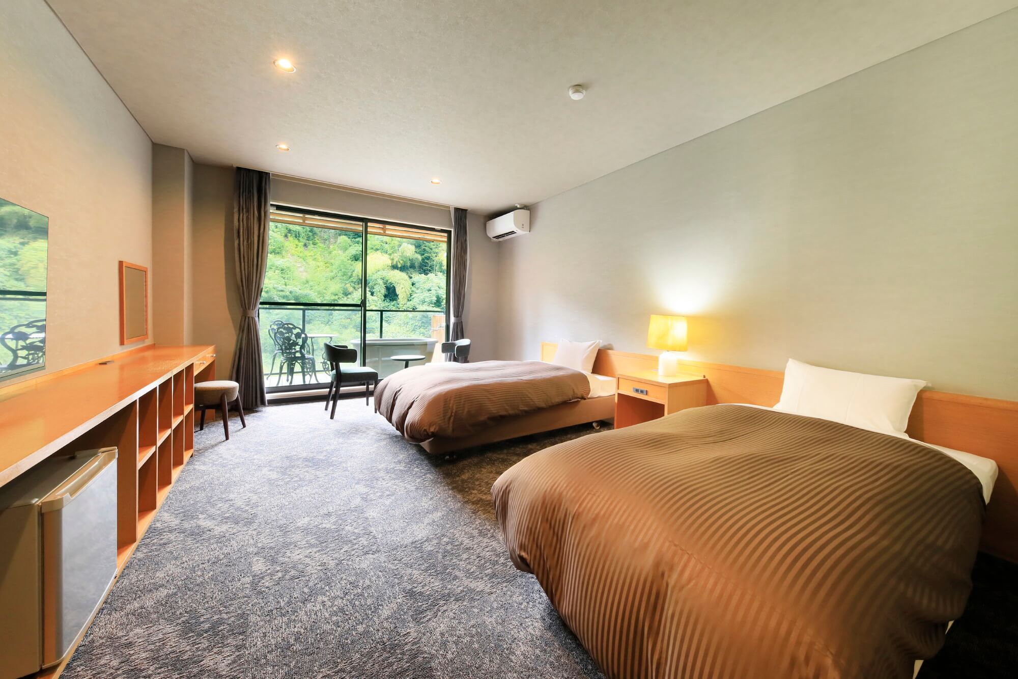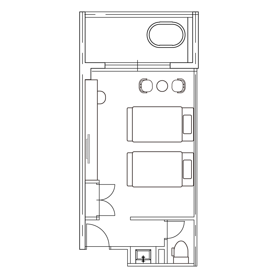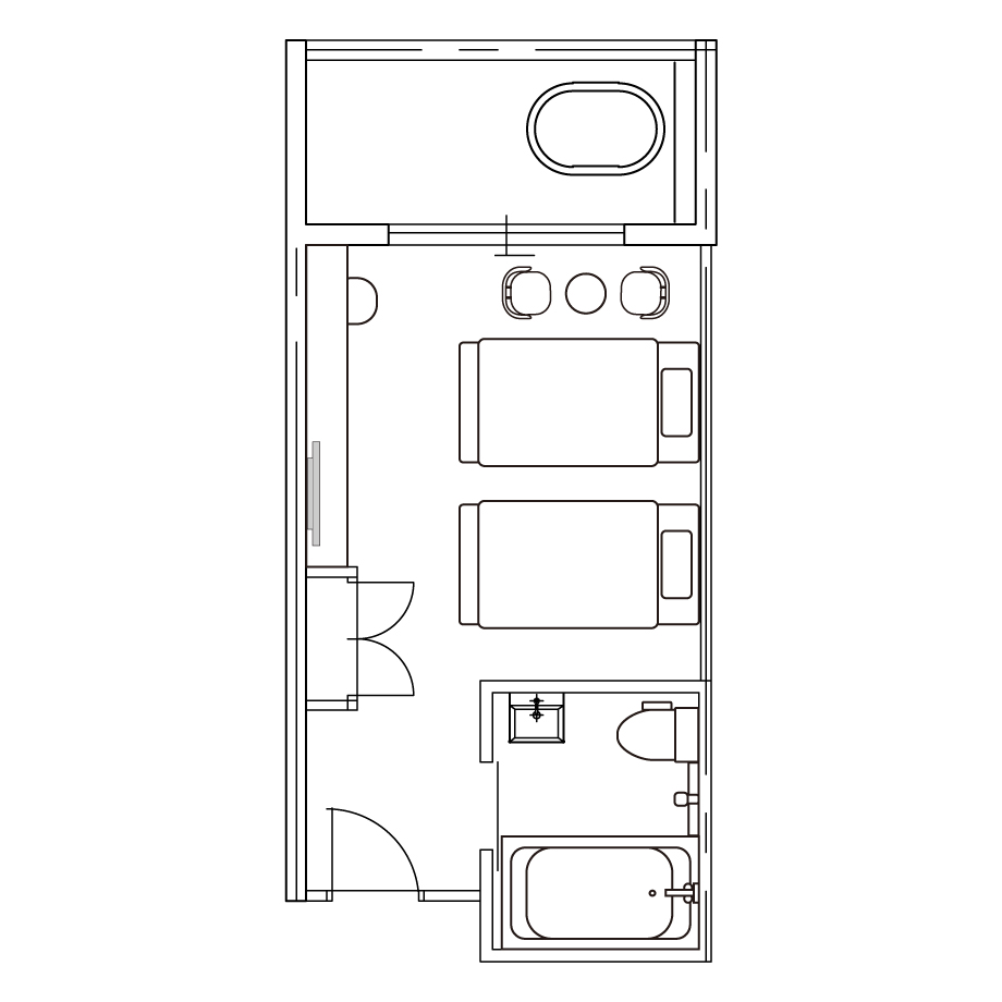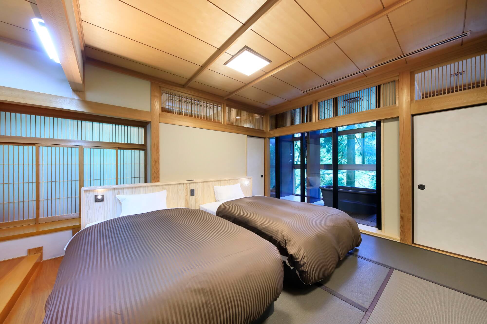 Twin Room with Open-Air Bathベッド2台を配した居心地の良いお部屋です。カップルやご夫婦での滞在におすすめです。