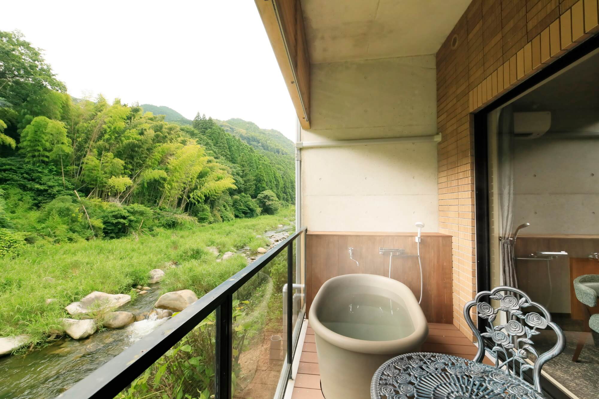 川のせせらぎを望む客室