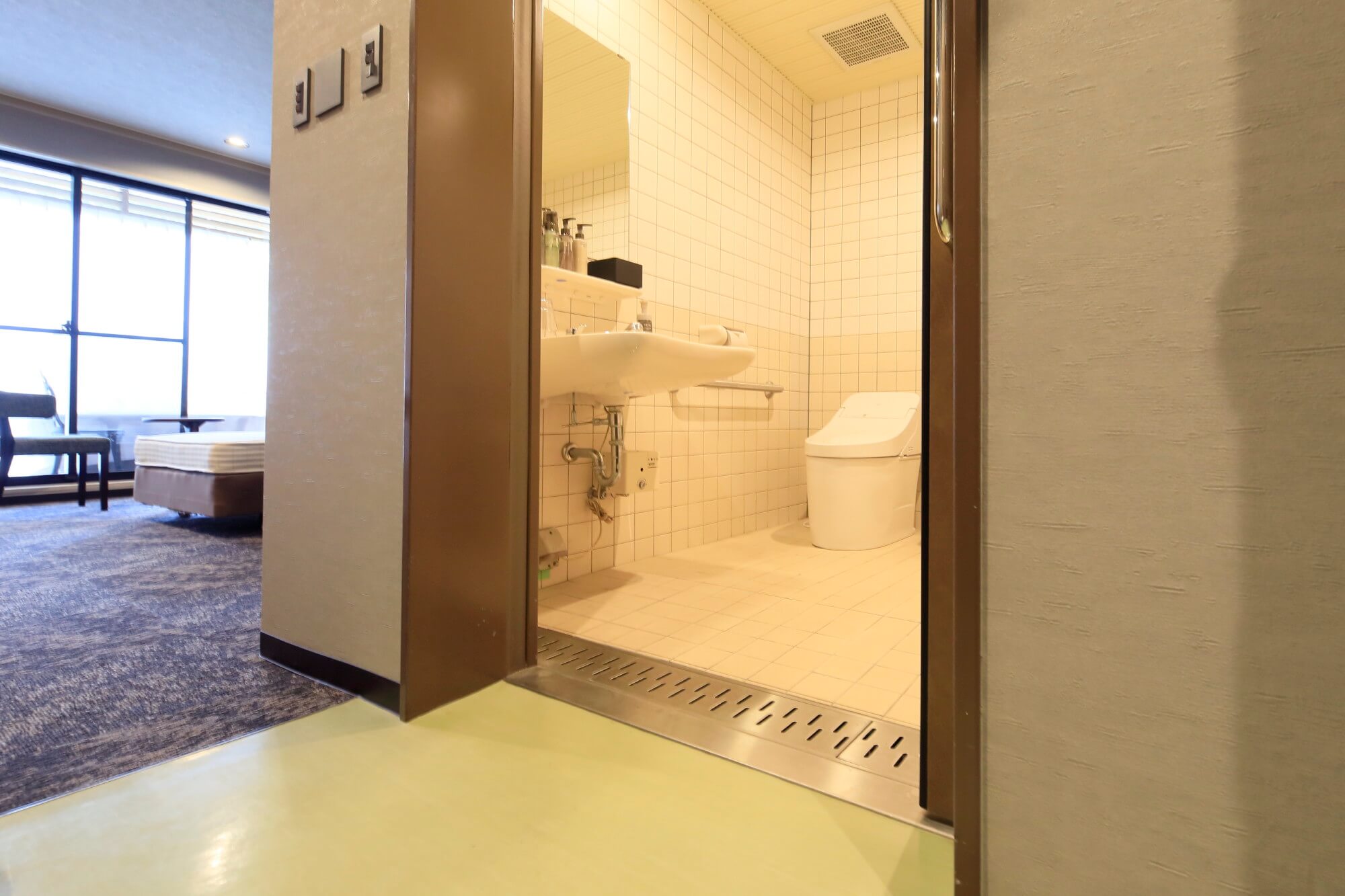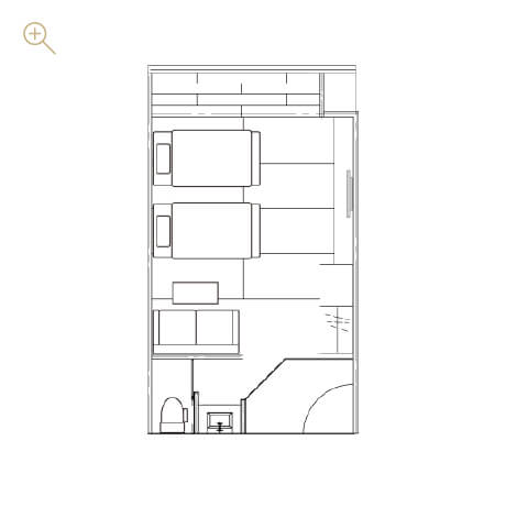 バリアフリーツインBarrier-Free Twin Room with Open-Air Bath段差の少ないバリアフリー対応の客室です。