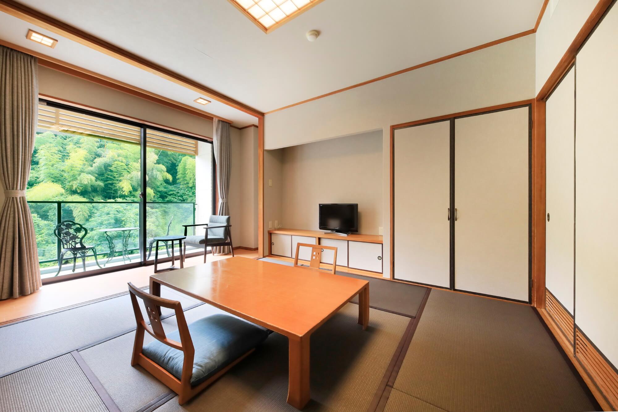 12-Tatami Japanese Room with Open-Air Bath最大6名様までお泊りいただける露天風呂付の和室です。
