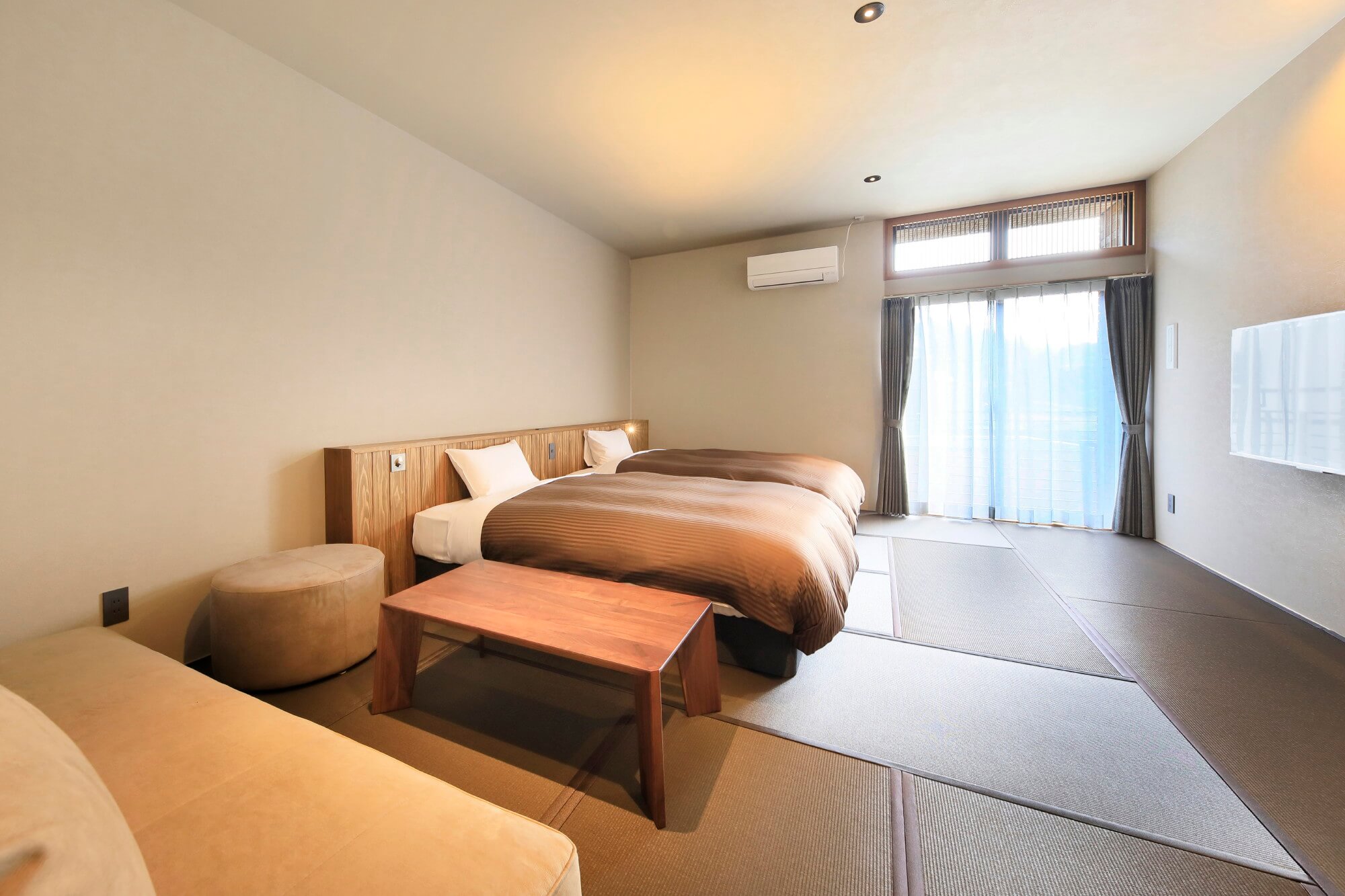 Twin Western-style room落ち着いた雰囲気の和室に、シモンズ製のセミダブルベッドを配したお部屋です。